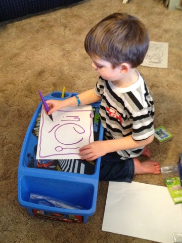 I downloaded the ABC Mouse app, not positive what it's called, but they have a song for every letter of the alphabet. It has really sparked Kees's interest in writing. Can you see the letters? There's a lower case "g", and upper case "G", a backwards "j", and an "i". Not sure what else he was writing, but it's exciting to see him learning!